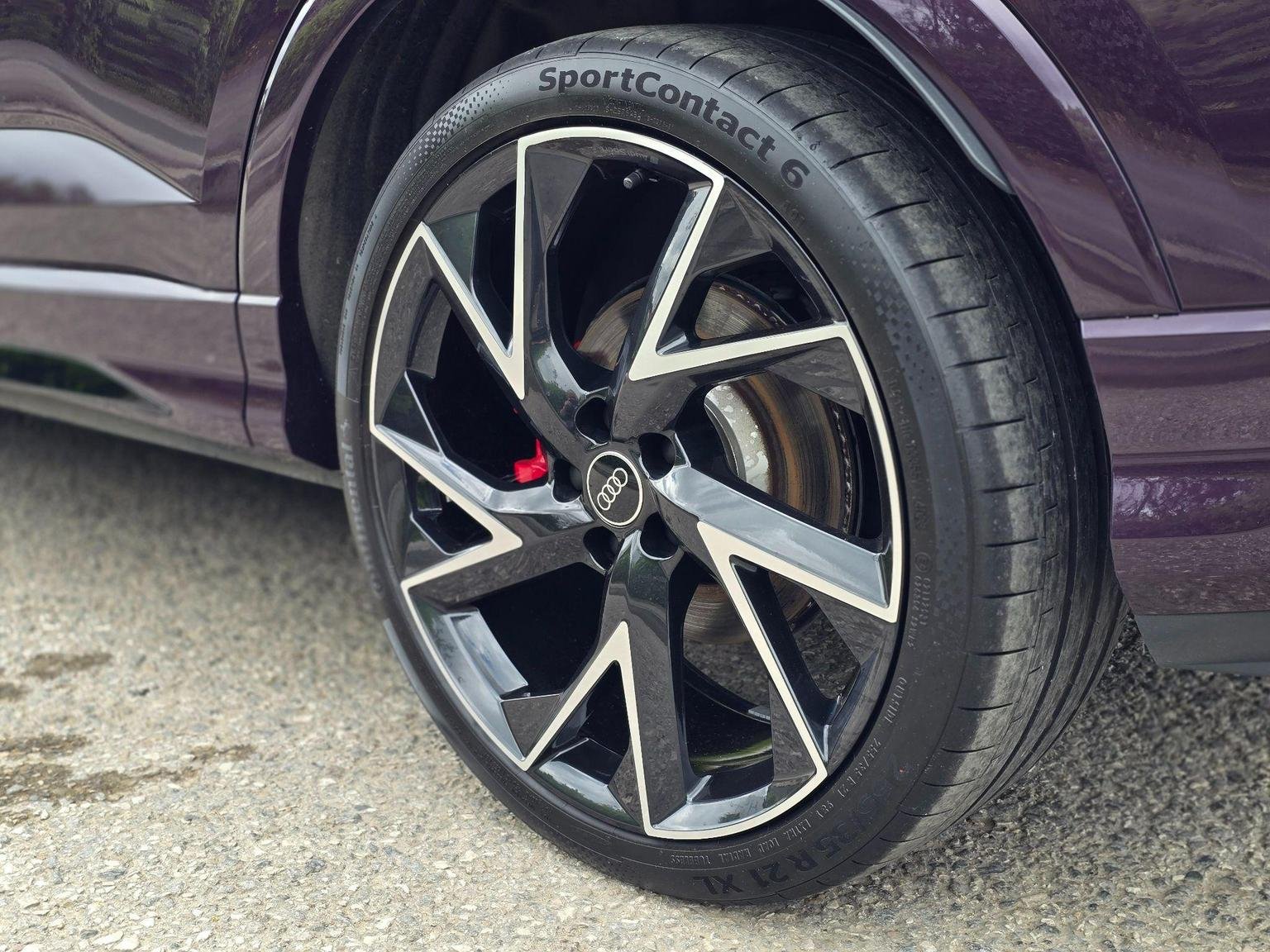Audi Exclusive Paint - Merlin Purple, 21in Alloy Wheels - 8.5J 5-Arm - Trigon Design in Titanium Grey - Diamond Cut Finish, Brake Calipers Painted in Red with RS Logo at the Front, Fine Nappa Leather - Black with Black Stitching